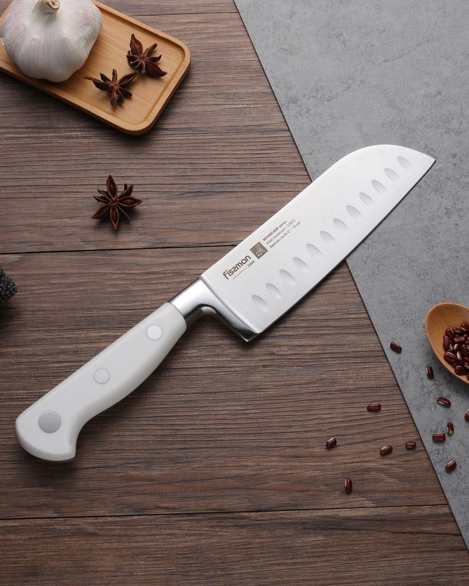 Fissman Santoku Knife Silver/White 6inch Monogami Series Non Stick Graphite