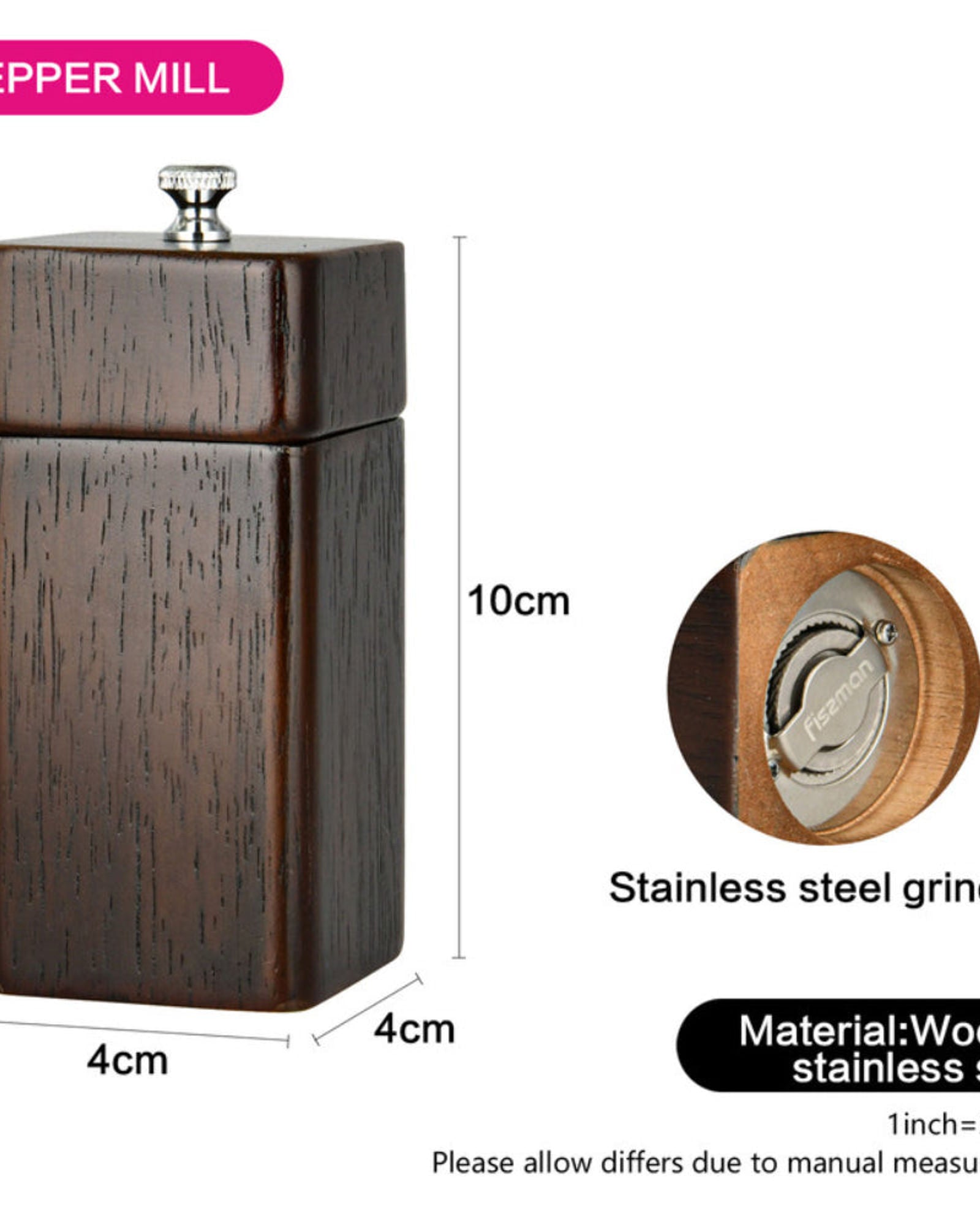 Fissman Square Shape Pepper Mill Dark Brown 11 x 5cm