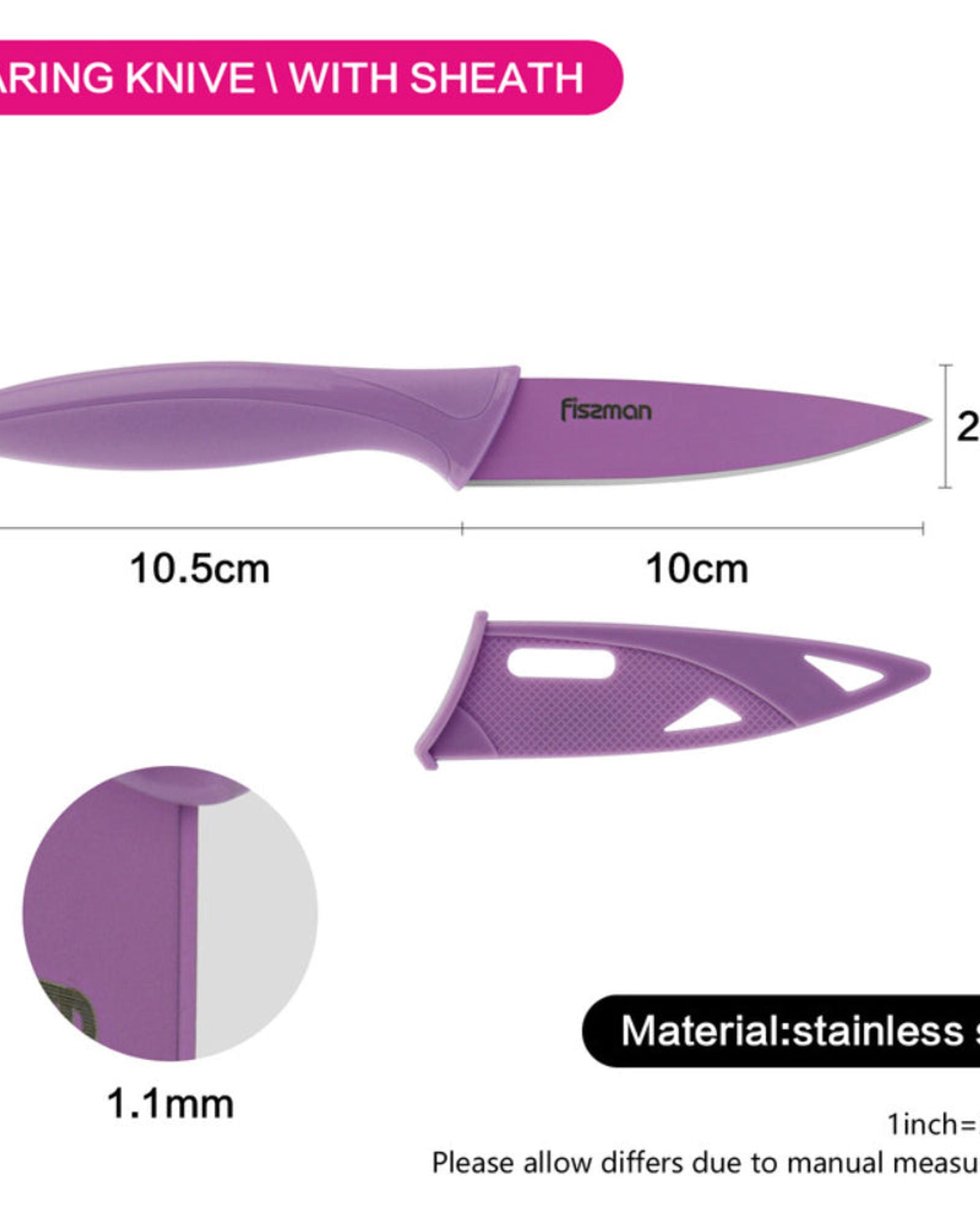 Fissman Stainless Steel Knife With Sheath Purple 20.5 x 2.5cm