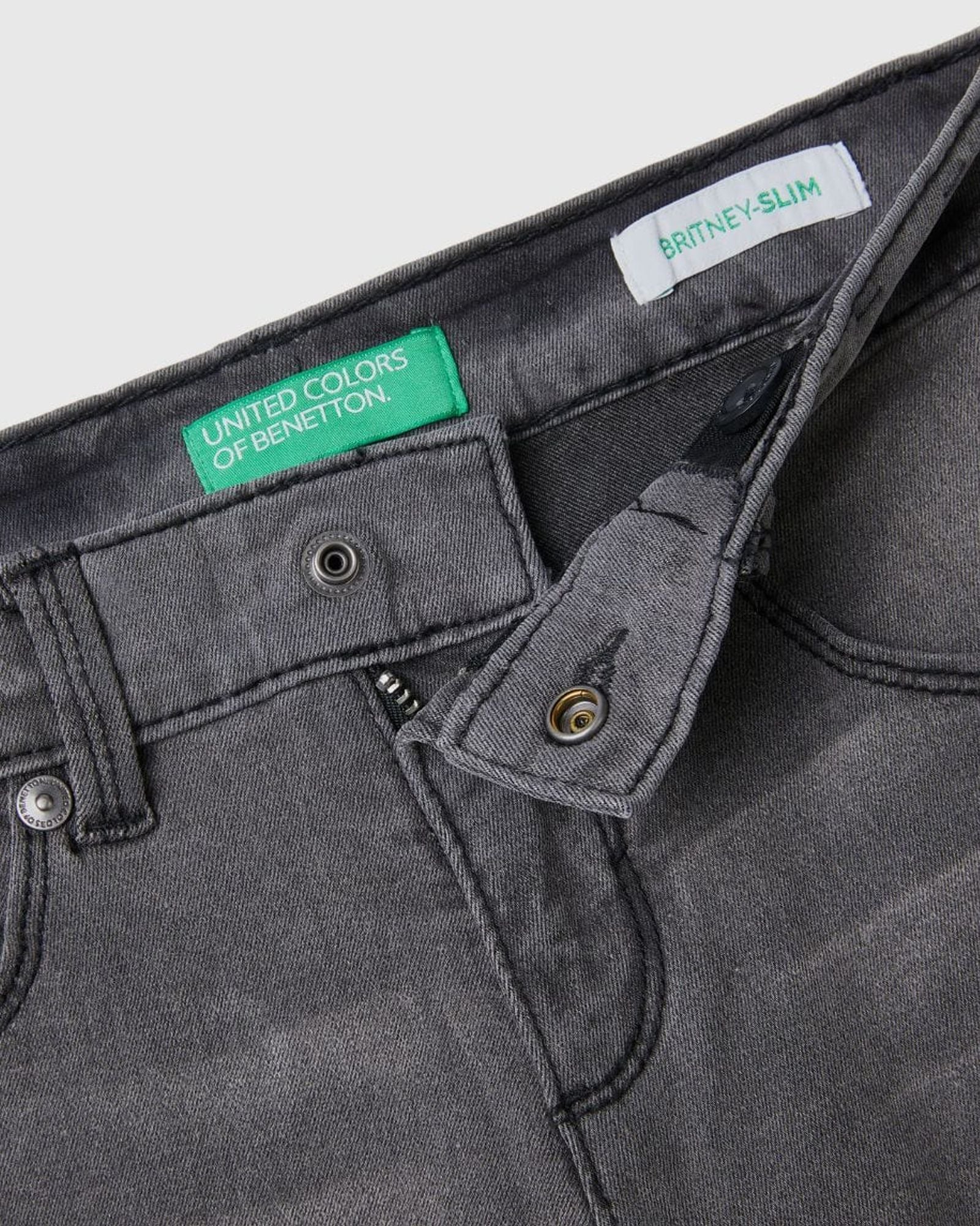 Five-pocket jeans in stretch denim with a worn look. Tight fit, low waist and zip and button opening. An everyday classic.