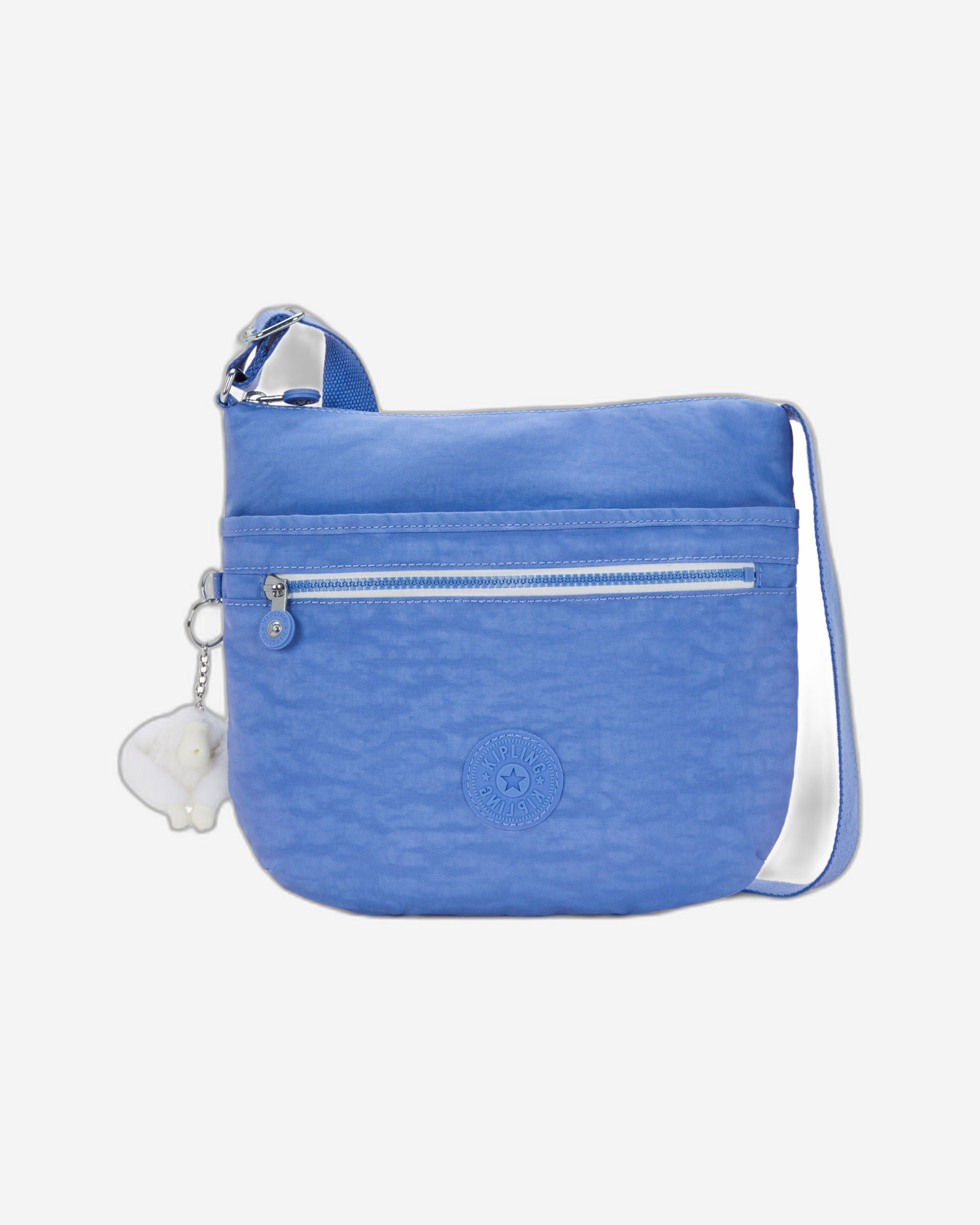 | Adjustable shoulder strap 2 Zipped front pockets Zipped rear pocket Zipped main compartment with: o Zipped pocket o Mobile phone pocket o Pouch pocket for wallet o Pen loop o Key fob Round Kipling logo Lightweight, lasting and always practical |