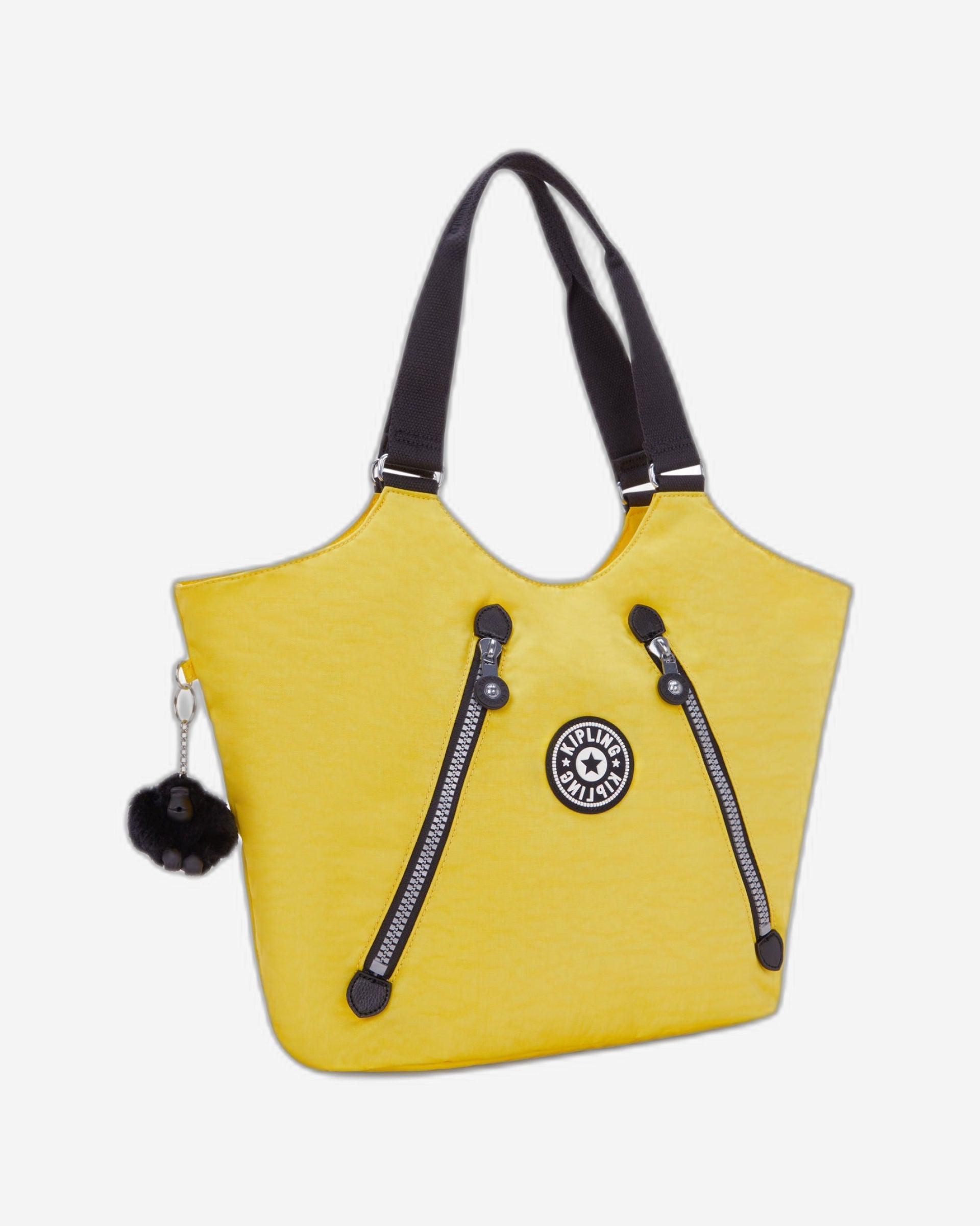 | Main compartment with zipped closure 1 zipped inside pocket 2 open inside pockets + 2 pen loops 2 diagonal zipped outside front pockets Key leash to quickly find your keys Round Kipling logo Kipling monkey keychain |