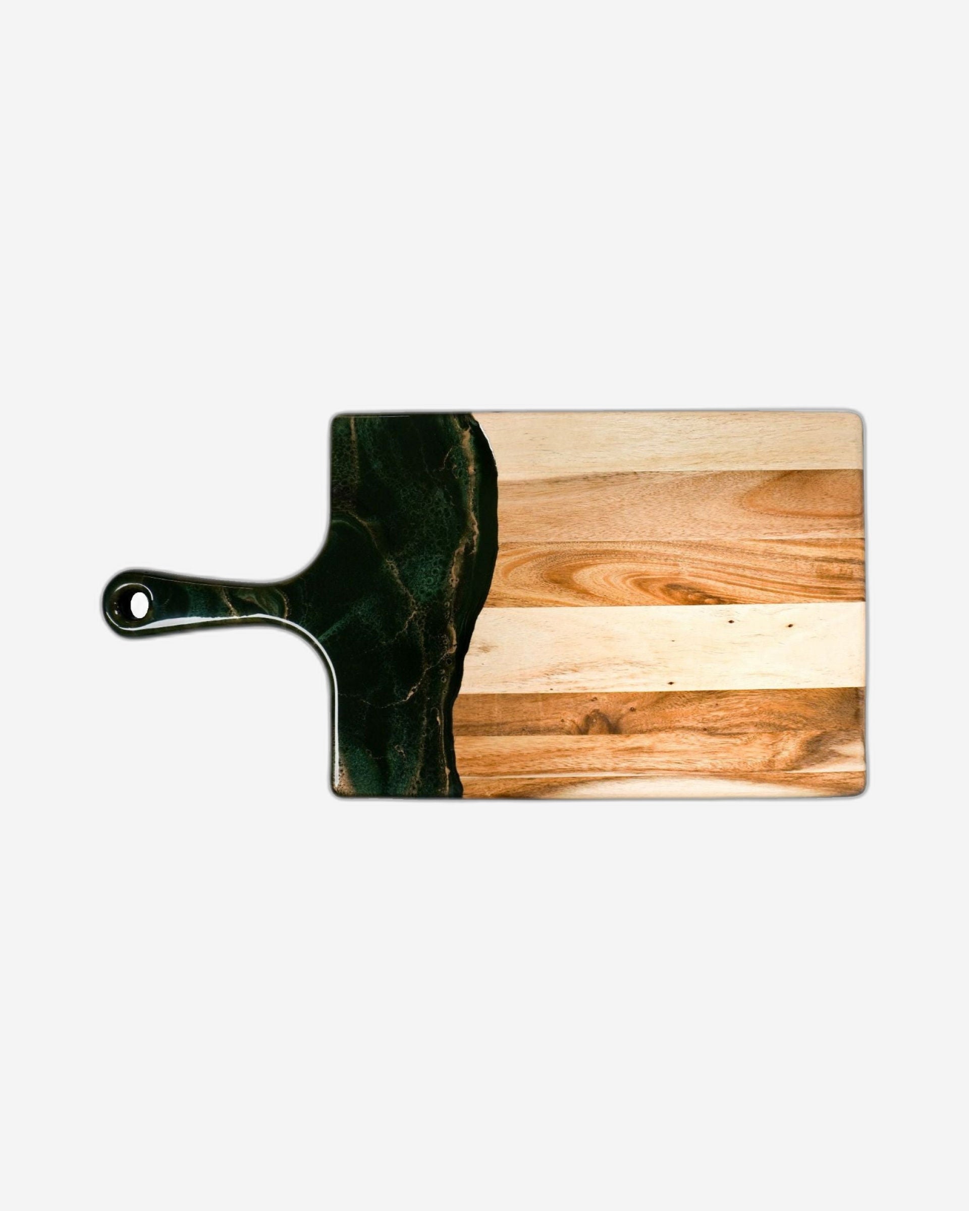 These pieces blend gorgeous Acacia hardwood and an eco-friendly resin to create a one-of-a-kind piece of serveware for your home. These cheese boards are perfect for serving a group of 4-6 people.
