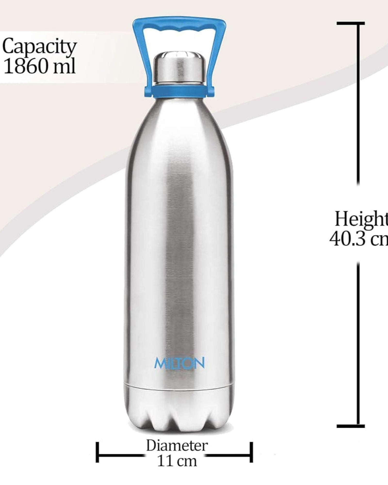 Milton Vacuum Insulated Thermo Steel Duo Dlx 2000 Bottle (1.86L) With Handle | 18/8 Stainless Steel, Keeps Drinks Hot And Cold For 24 Hours, Double-Walled Thermos Flask With Inner Copper Coating