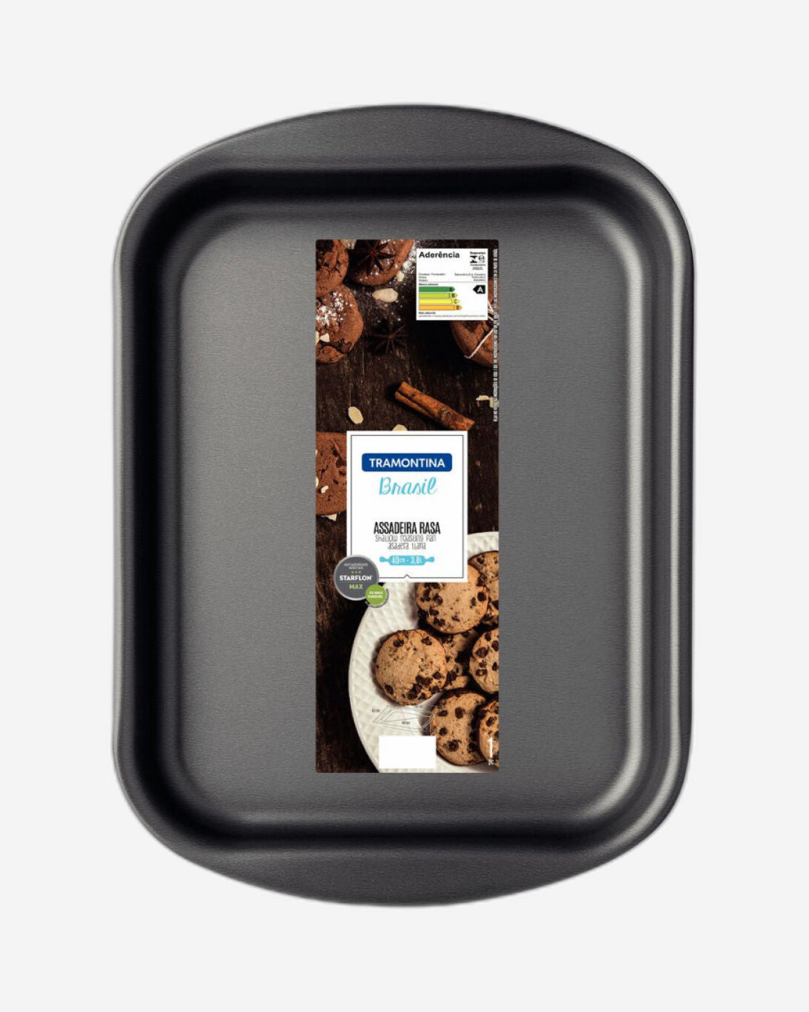 The Tramontina Brasil aluminum flat roasting pan with interior and exterior Starflon Max nonstick coating graphite, measuring 40 centimeters with 3.8-liter capacity, is the right company for the best moments in the kitchen! Perfect for baking delicious crackers and cookies, it brings practicality and style into your home. Made of aluminum, it allows for fast and even cooking. In addition, it features interior and exterior Starflon Max nonstick coating, which ensures longer durability, is not harmful to the health and keeps food from sticking to its surface. It is super practical, easy to clean and dishwasher safe, optimizing your tasks in the kitchen. Choose Tramontina items and guarantee the best for your kitchen!
