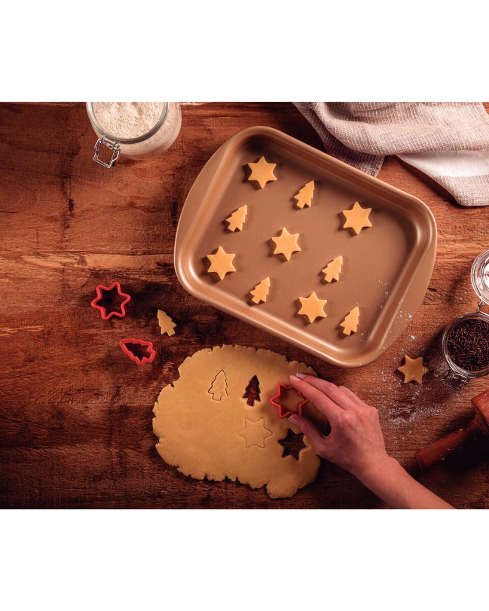 Preparing cookies and crackers will be even more pleasurable and flavorful with the Tramontina Brasil aluminum flat roasting pan with interior and exterior Starflon Max nonstick coating red, measuring 40 centimeters with 3.8-liter capacity. Made of aluminum, it allows food to bake evenly and its interior and exterior Starflon Max nonstick coating ensures longer durability, making it not harmful to the health and keeping food from sticking to its surface. It also brings practicality to your day as it is dishwasher safe. Guarantee more quality and flavor in your kitchen with Tramontina products!