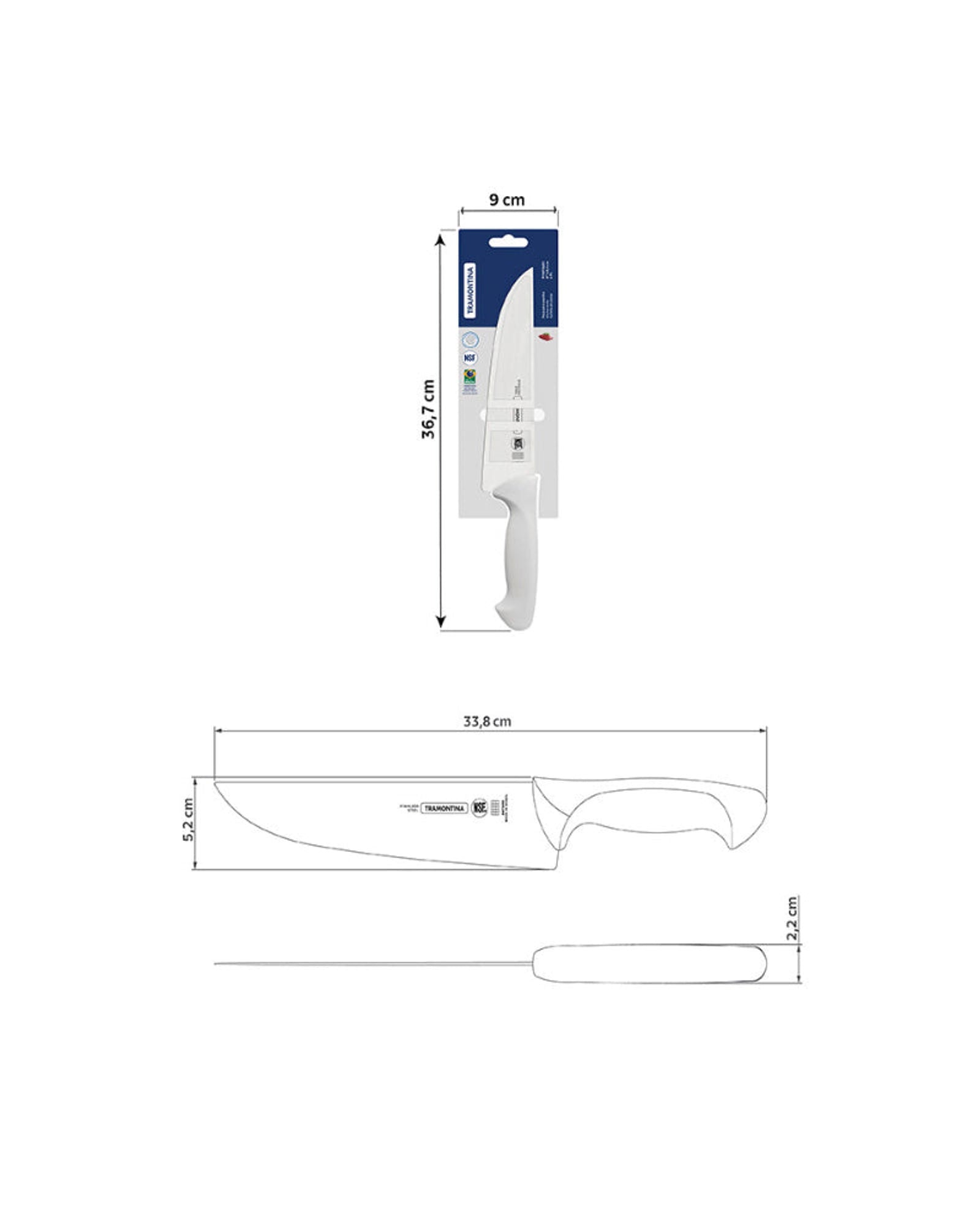 Tramontina Premium 8" kitchen knife Stainless Steel Blade with White Polypropylene Handle
